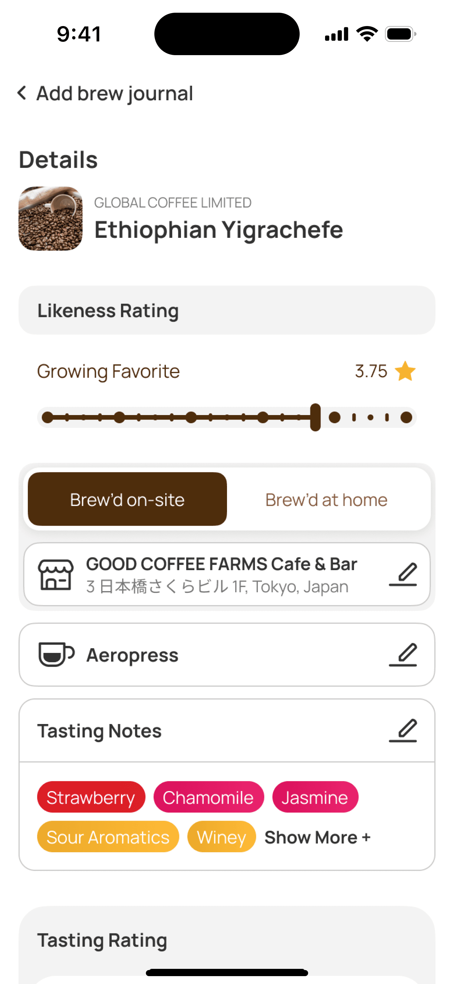 Build your personal coffee journey. Never forget a great brew again.