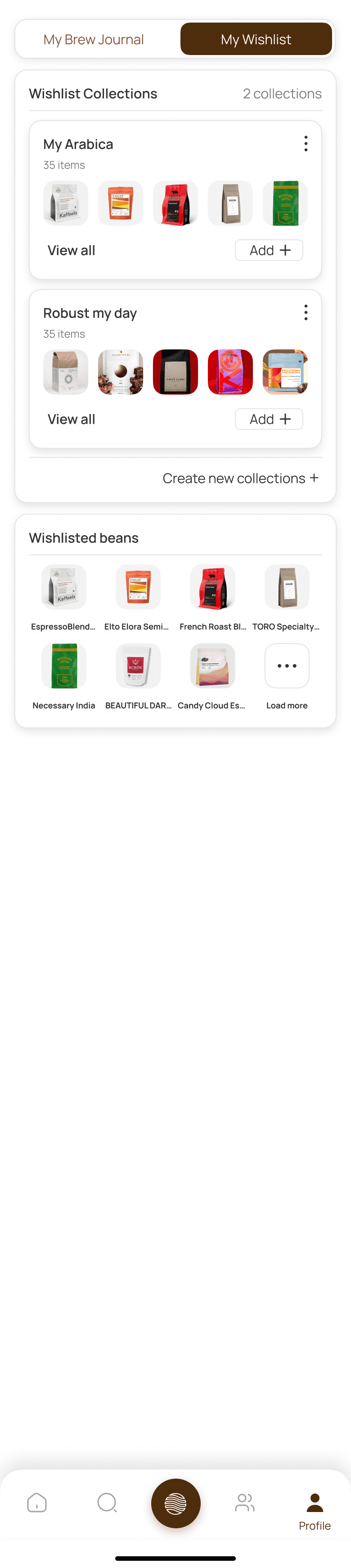 Build a personal collection of cafes and coffees.