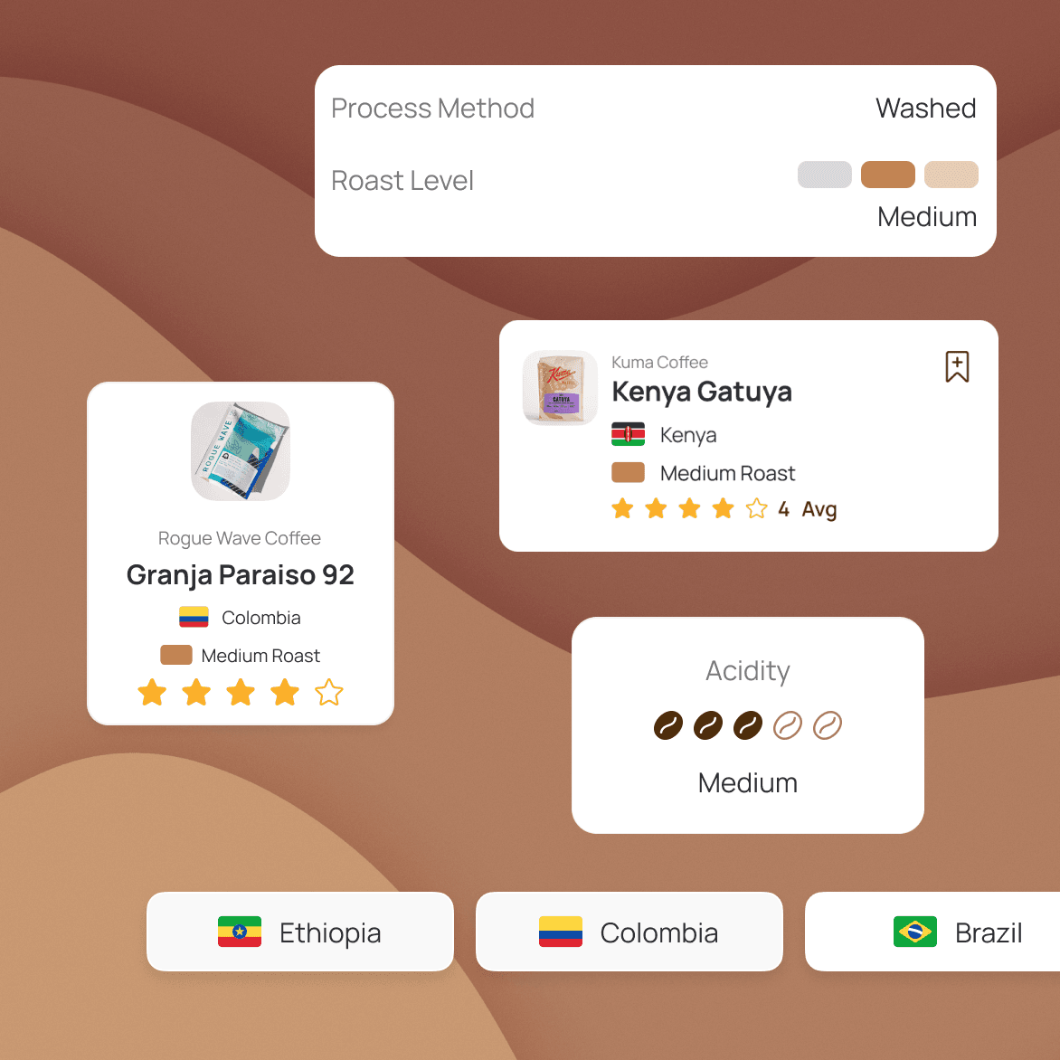 Brew’d is designed for coffee lovers who want to understand what they drink, why they like it, and where to find their next great cup.